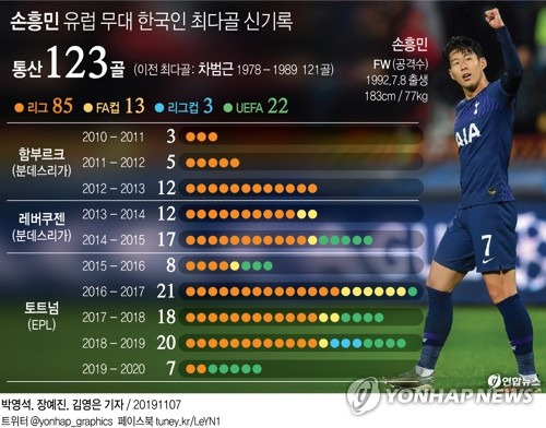 - 프리미어리그 통산 100골 이상 득점: 아시아 선수 최초로 프리미어리그 통산 100골을 달성했으며, 토트넘 홋스퍼 역대 득점 순위에서도 5위에 올랐습니다. 또한, 토트넘 구단 역사상 최다 도움을 기록한 선수이기도 합니다.