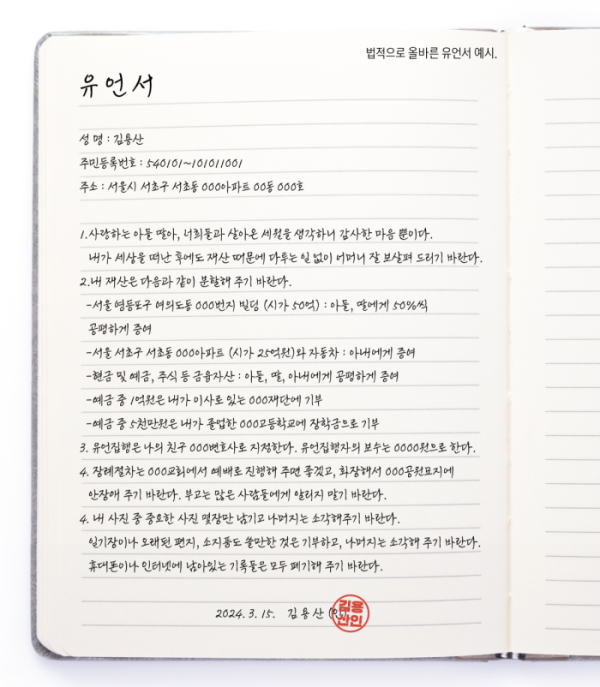 법적 효력 있는 유언장 작성 방법 (대한민국 민법 기준)