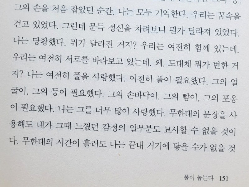 김사과의 장편소설 「풀이 눕는다」는 실패한 젊은 여성 소설가 ‘나’와 무명 화가 ‘풀’의 파국적 사랑을 통해, 2000년대 서울의 청춘·가난·자기파괴적 욕망을 날것 그대로 드러낸 작품이다. 제목은 김수영의 시 「풀」을 연상시키지만, 여기서 ‘풀이 눕는다’는 것은 결국 주인공의 삶과 의지가 무너져 내려가는 상태를 상징한다는 해석이 많다.