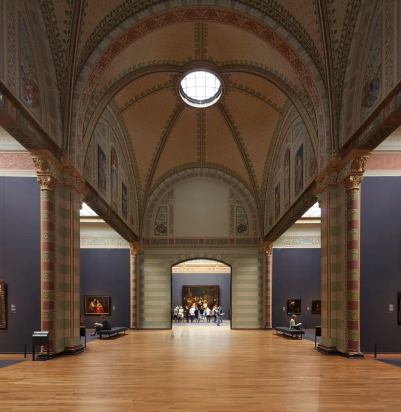 중앙 ‘명예의 전당’(Gallery of Honour)을 따라 걸으면 황금기 거장들의 방이 양쪽으로 줄지어 있고, 마지막에 렘브란트 「야경」이 독립된 홀에서 관람객을 맞이하는 구조입니다.