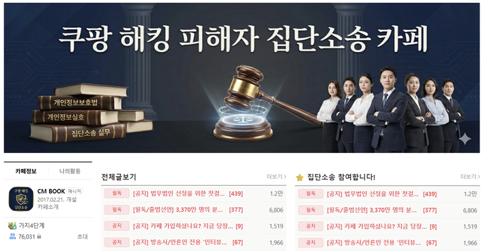 - 이후 주요 법무법인들이 “쿠팡 집단소송 참여자를 모집”하고 있고, 온라인 상에서는 관련 카페/모임이 빠르게 성장 중입니다. 일부 카페 기반 회원 수는 수십만 명에 달한다는 보도도 있어요.