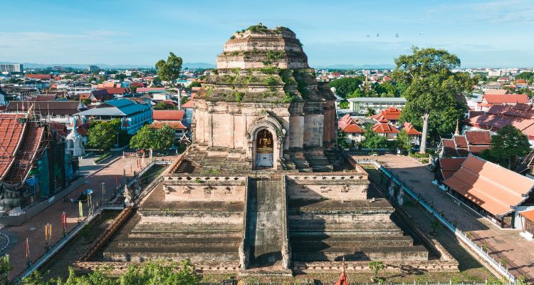 | 왓 체디 루앙(Wat Chedi Luang) | 14세기 파괴된 체디, 코끼리 석상 | 거대 코끼리+파란 하늘, 내부 불상 |