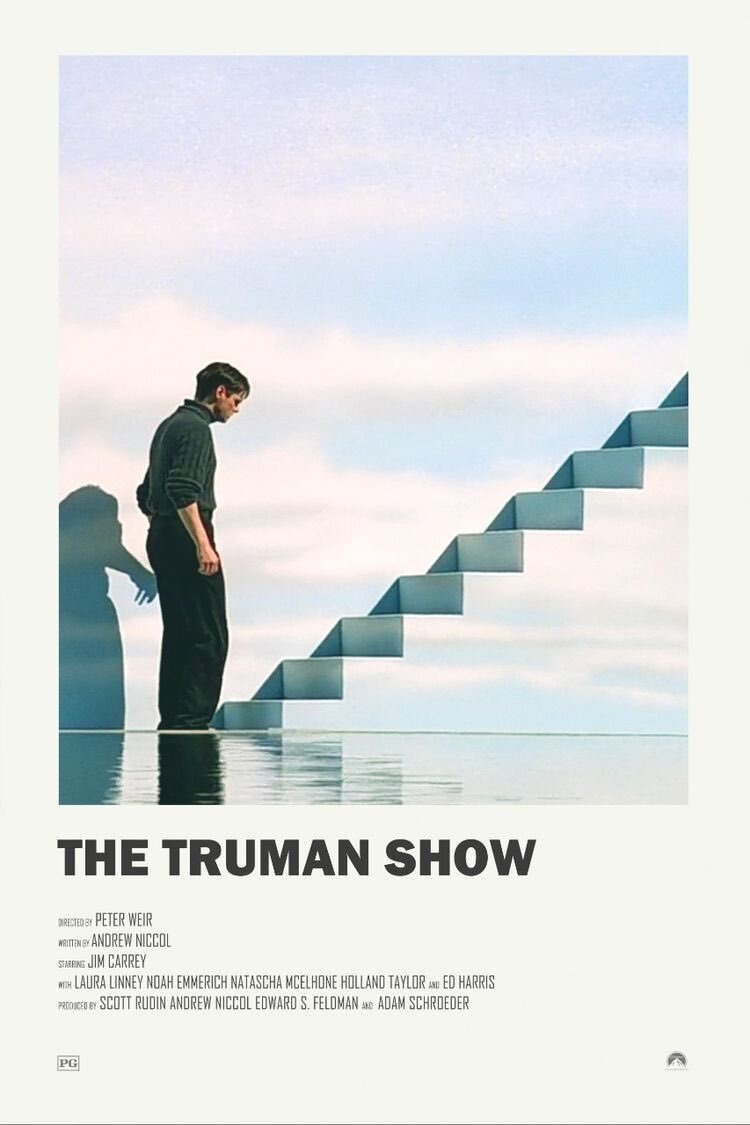 영화 트루먼 쇼(The Truman Show, 1998)는 미국에서 제작된 SF 드라마 코미디(드라메디) 영화로, 현실처럼 꾸며진 거대한 스튜디오에서 자신이 24시간 생방송되는 리얼리티 쇼의 주인공임을 알지 못한 채 살아가는 한 남자의 이야기를 다룹니다. 감독은 호주 출신의 피터 위어(Peter Weir), 주연은 짐 캐리(Jim Carrey)가 맡았으며, 각본은 앤드루 니콜(Andrew Niccol)이 담당했습니다