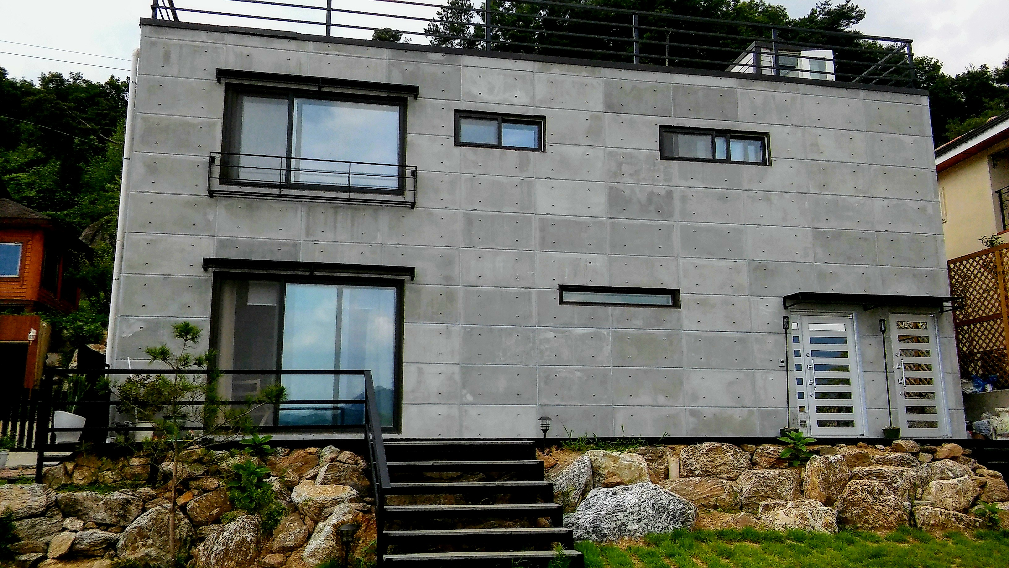 - 노출 콘크리트: 매끈하고 정교하게 마감된 노출 콘크리트가 그의 대표적 상징입니다. 처음 건축을 공부 할때 부터 자가를 설계할때, 반듯이 노출 콘크리트로 해야겠다는 마음을 갖고 그 마음을 20년후에 실현했습니다.