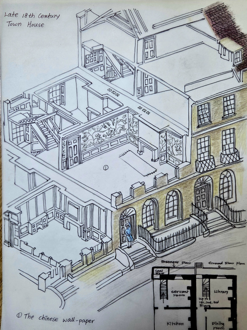 엑소노메트릭(Exonometric) 도법은 3차원 입체를 2차원 평면에 투영하여 그리는 건축 및 디자인 도면 기법입니다. 이 중에서도 아이소메트릭(isometric) 도법이 가장 대표적이며, 이 방식에서 도면의 축을 각각 120도(즉, x축과 y축이 수평선에서 각각 30도씩 기울어진 상태)로 그립니다. 우수워 보이는 이 그림 쉬지 않고 5시간 그린 그림입니다.