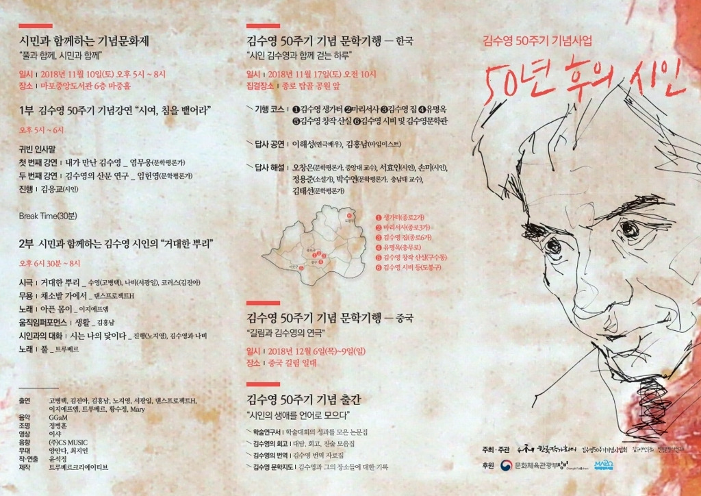 - 김수영 문학상 등으로 그의 정신과 업적이 계승되고 있으며, 오늘날까지도 많은 독자와 시인들에게 영감을 주고 있음.