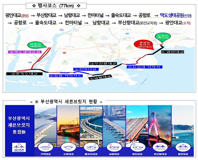 - 코스 : 부산 대표 해상교량 및 지하차도 + 터널 총 77km